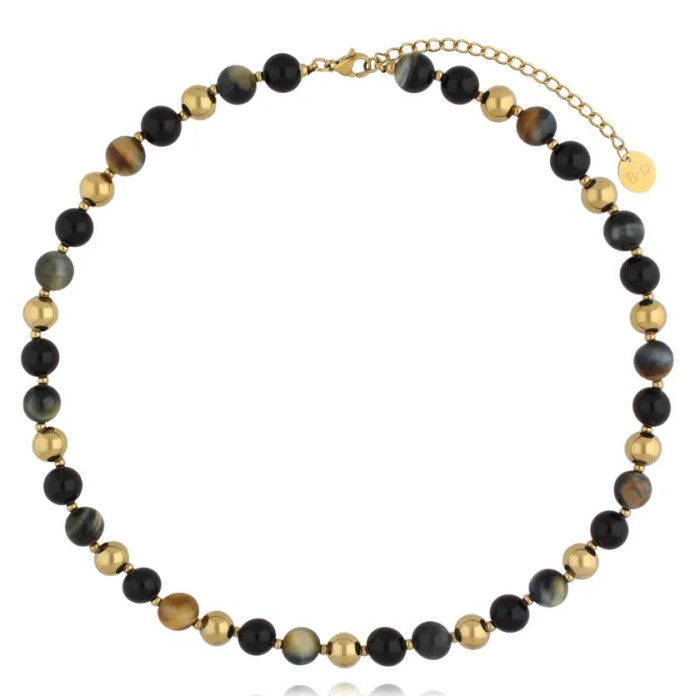 Kamienie: agaty, tygrysie oko.