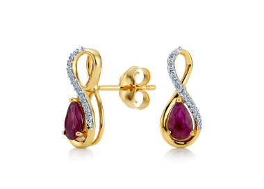 Odkryj wyjątkowy symbol wieczności w formie złotych kolczyków z rubinami i diamentami. Zaprojektowane w kształcie subtelnej nieskończoności, te eleganckie kolczyki wykonane są z żółtego złota próby 585 (14k). Połączenie ognistej czerwieni rubinów z delikatnym blaskiem 24 diamentów tworzy biżuterię, która zachwyca zarówno stylem, jak i przesłaniem.