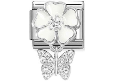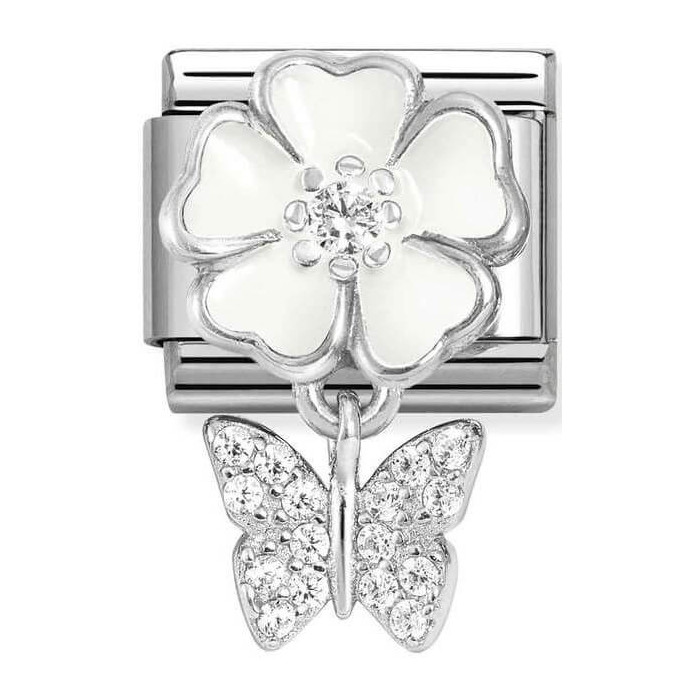 Nomination Element Link Silver Charms Biały Kwiatek I Wiszący Motylek