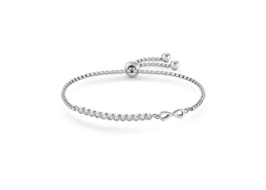Projekt wykonany został ze stali szlachetnej, zabarwionej bardzo trwałą powłoką PVD w kolorze srebra. Model zdobią również cyrkonie i zawieszka z motywem nieskończoności.