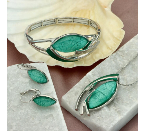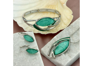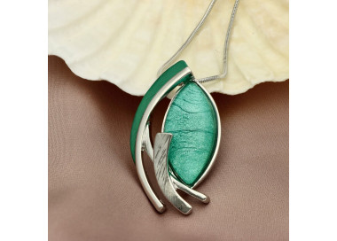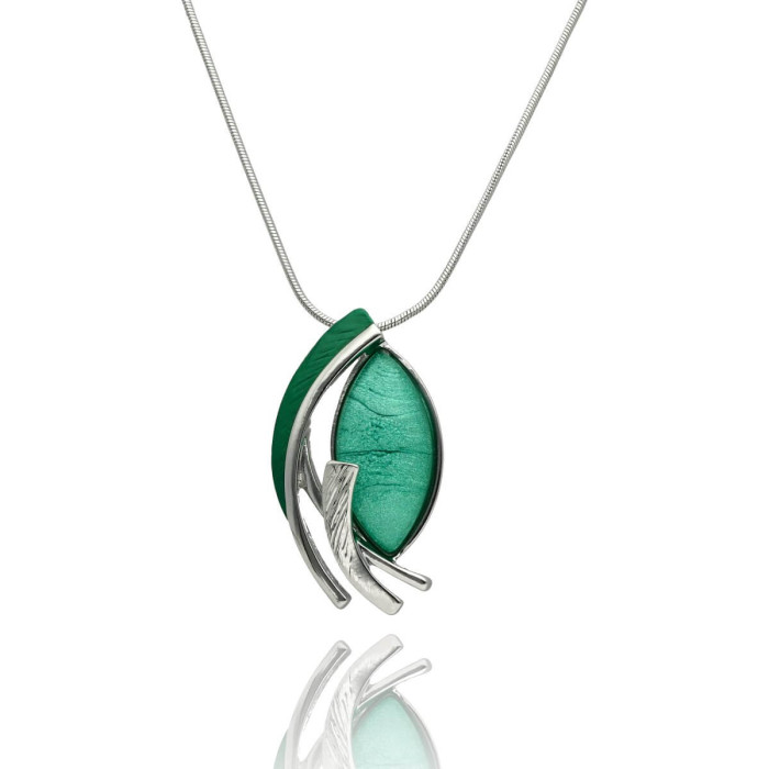 Naszyjnik Yvon Silver Z Zieloną Żywicą I Emalią
