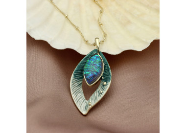 Klasyczny naszyjnik, wisior, wykonany w całości z antyalergicznego metalu i kolorowej żywicy oraz naturalnego kwarcu.