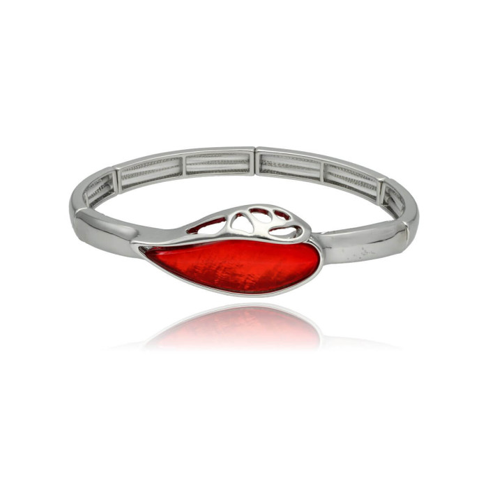 Elegancka bransoletka ze wzorem liścia, wykonana w całości z antyalergicznego metalu i kolorowej żywicy.