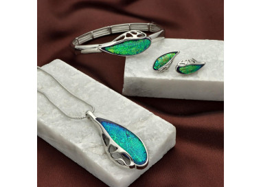 Biżuteria wykonana z metalu antyalergicznego, żywicy i emalii.