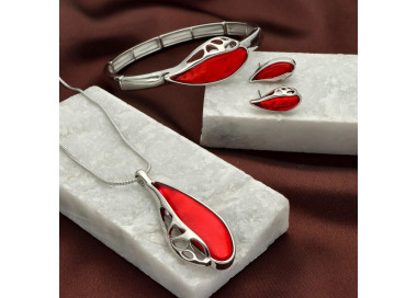 Biżuteria wykonana z metalu antyalergicznego i kolorowej żywicy.