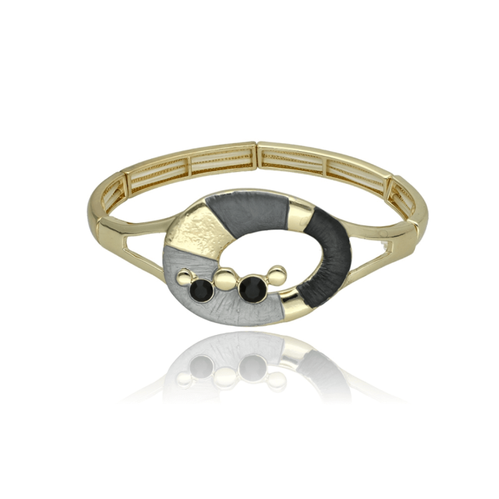 Elegancka bransoletka ze wzorem liścia, wykonana w całości z antyalergicznego metalu i kolorowej żywicy.