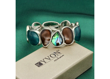Elegancka bransoletka, wykonana w całości z antyalergicznego metalu, kolorowej żywicy i emalii.