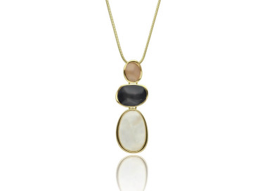 Klasyczny naszyjnik, wisior, wykonany w całości z antyalergicznego metalu i kolorowej żywicy oraz naturalnego kwarcu.