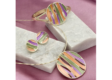 Biżuteria wykonana z metalu antyalergicznego i kolorowej żywicy.